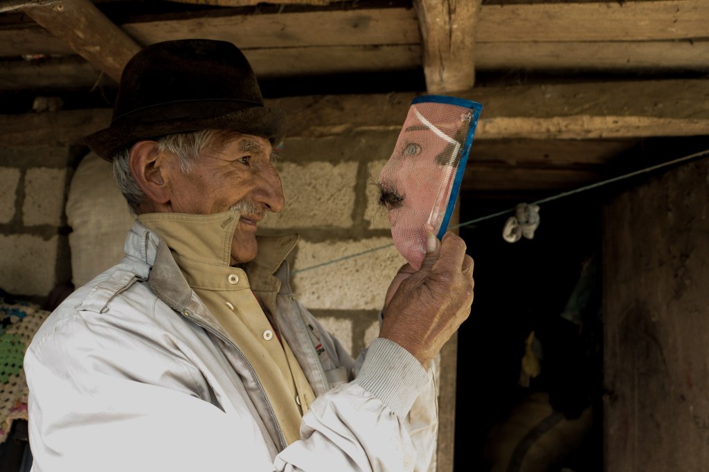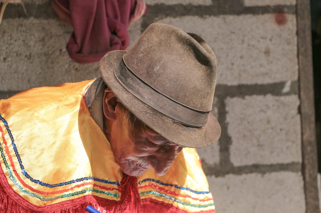 Con energía y buen buen humor, hace la demostración del ritual al momento de vestir el traje del tradicional Bombacho, esto con la colaboración incondicional de su amada esposa.