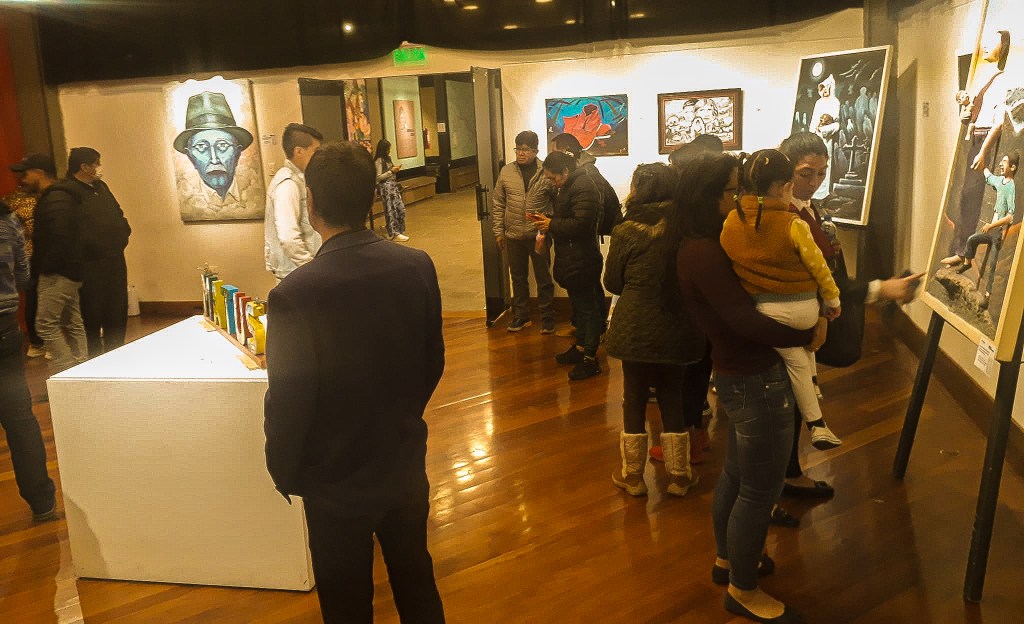 El Artista Rodrigo Mariño, con los invitados a la exposición.