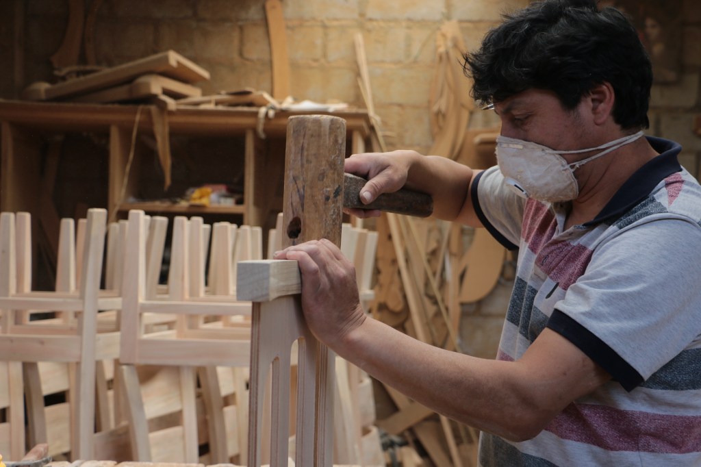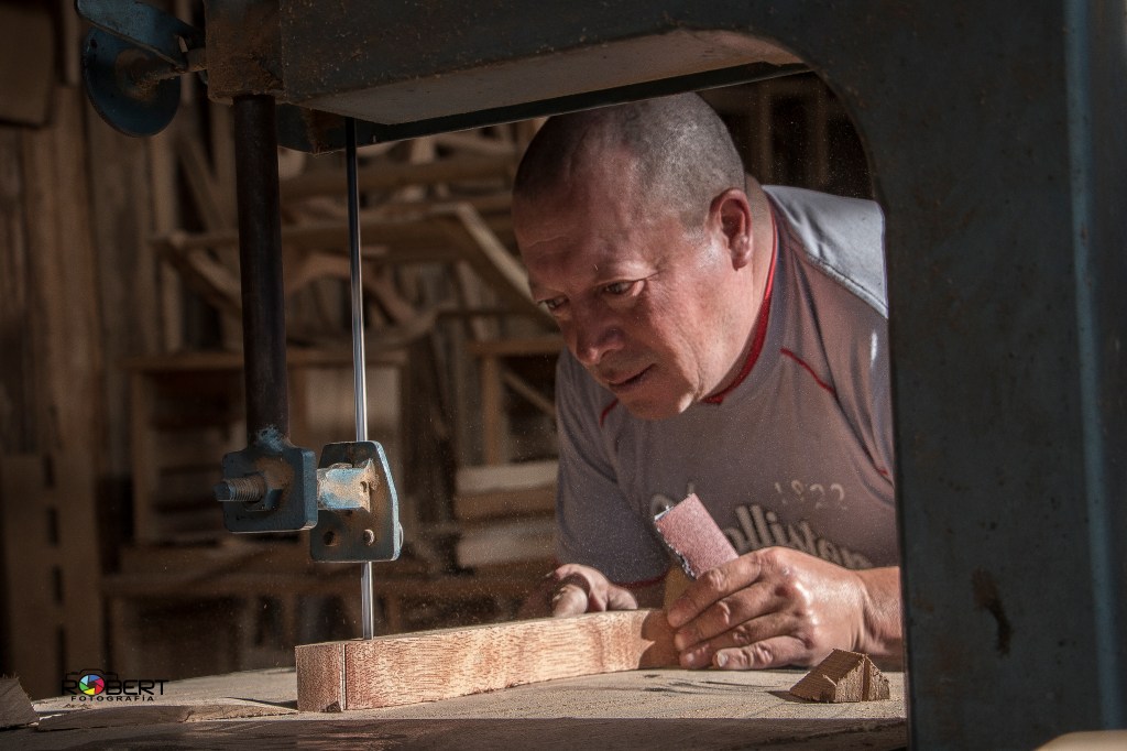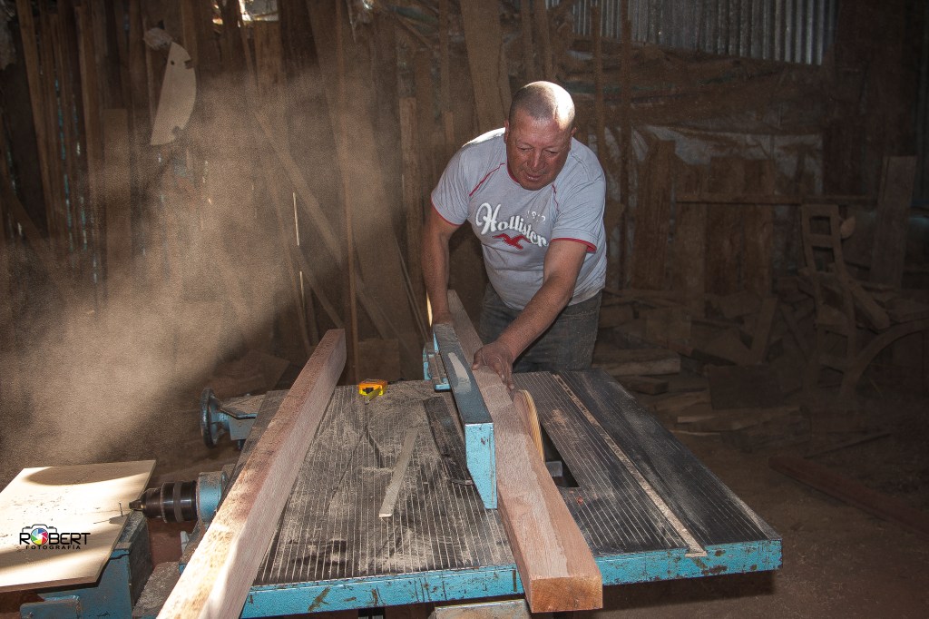 Preparando la madera para la elaboración de muebles en Huambaló.